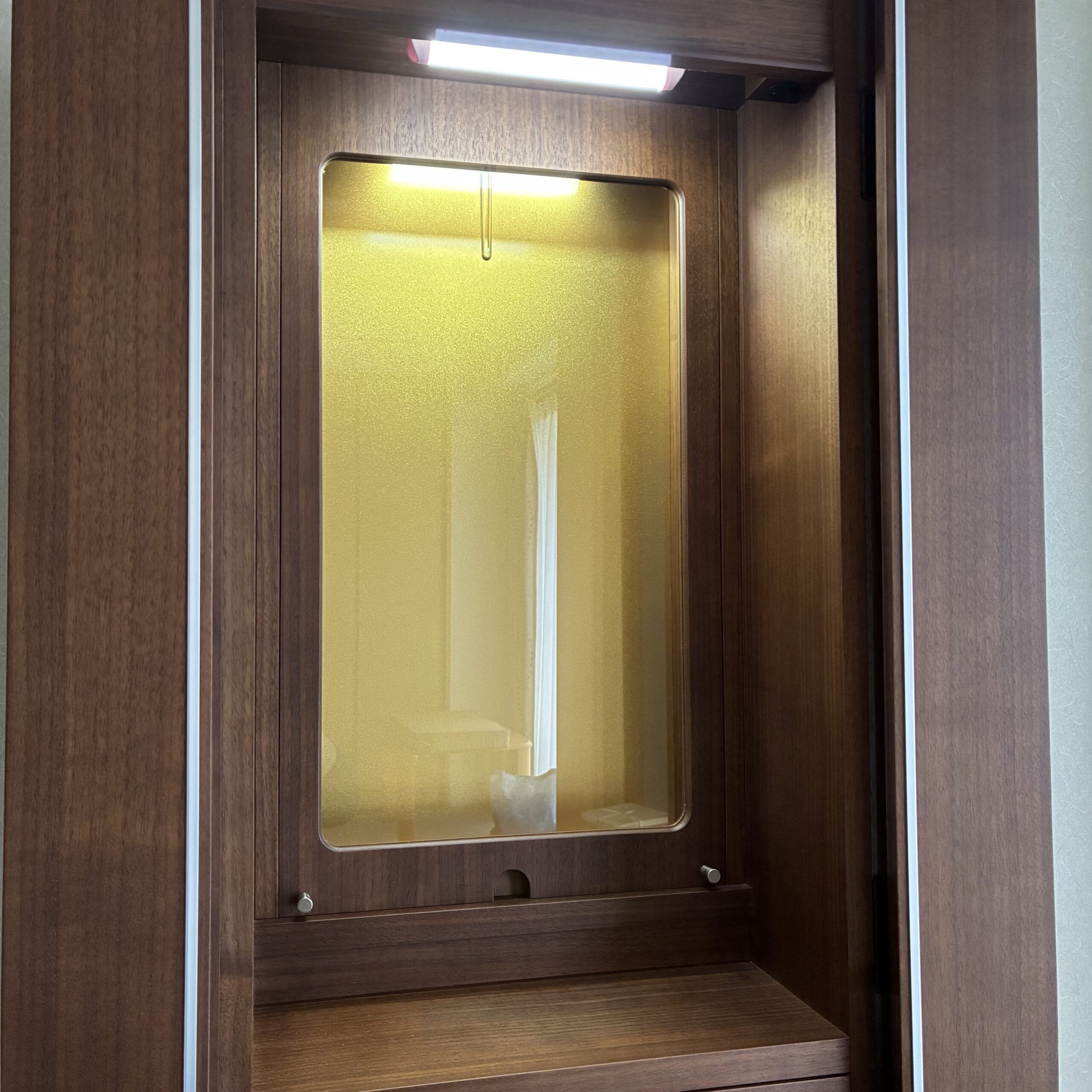 お厨子はガラス式で御本尊様のスペースは広くなり、明るく御本尊様を荘厳致します。