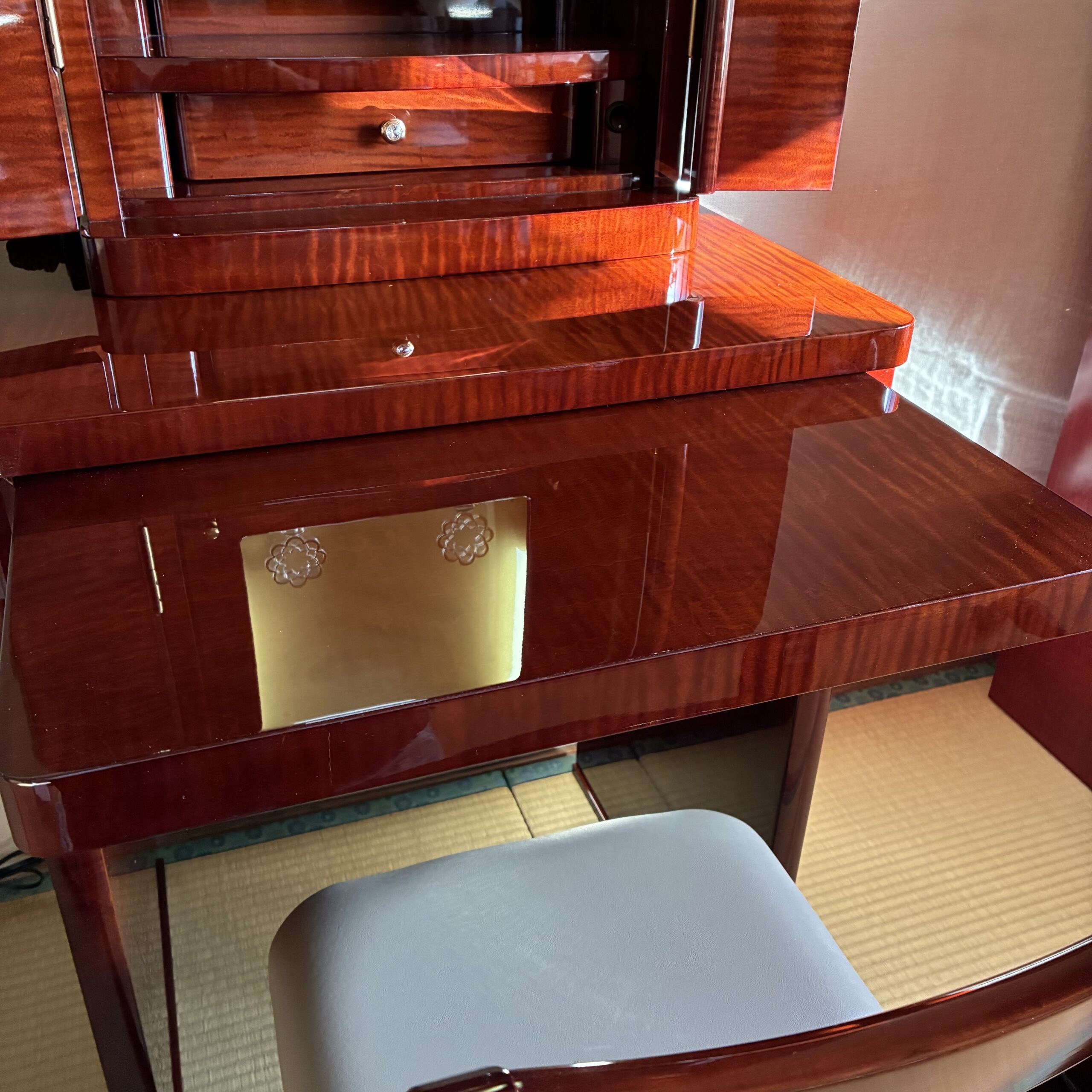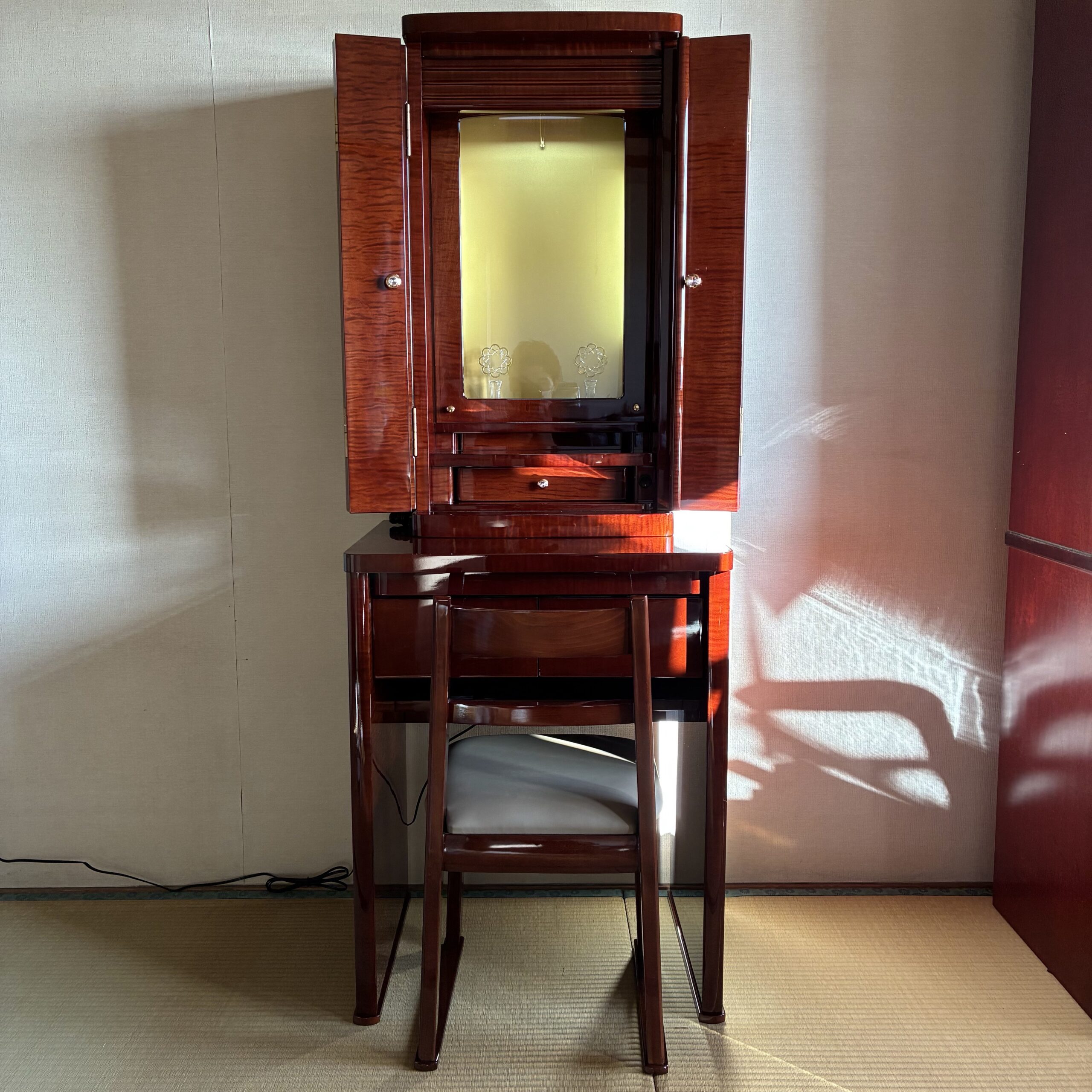 上台に一杯、下台に二杯と引き出しも有り、特に下台引き出しは通常の家具調の引き出しよりも深く、しっかりと収納が出来ます。