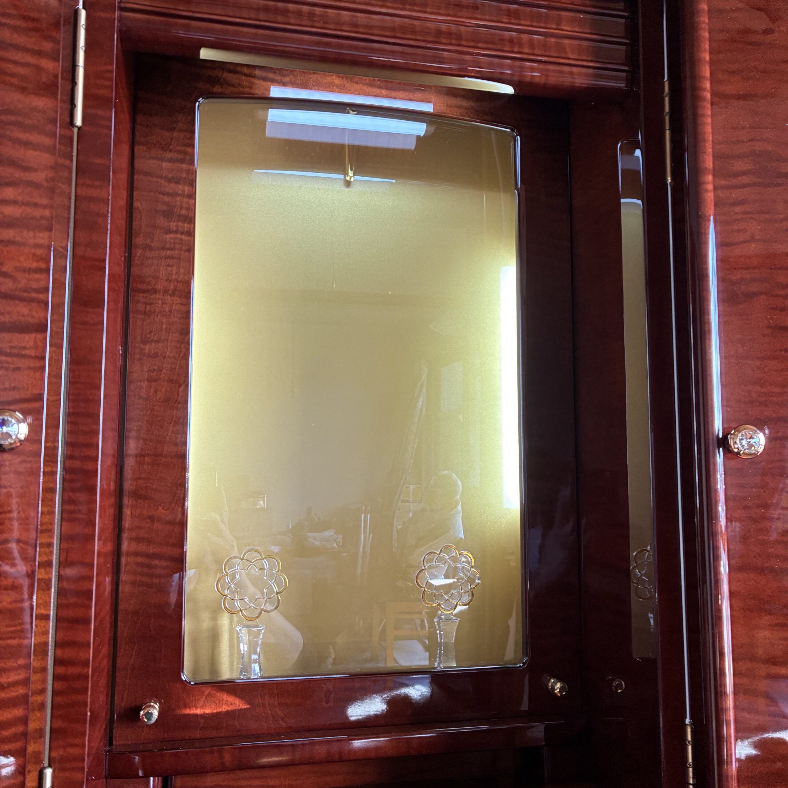 お厨子はガラス式で御本尊様のスペースは広くなり、光彩厨子で両側面からのLED照明を当てることで、