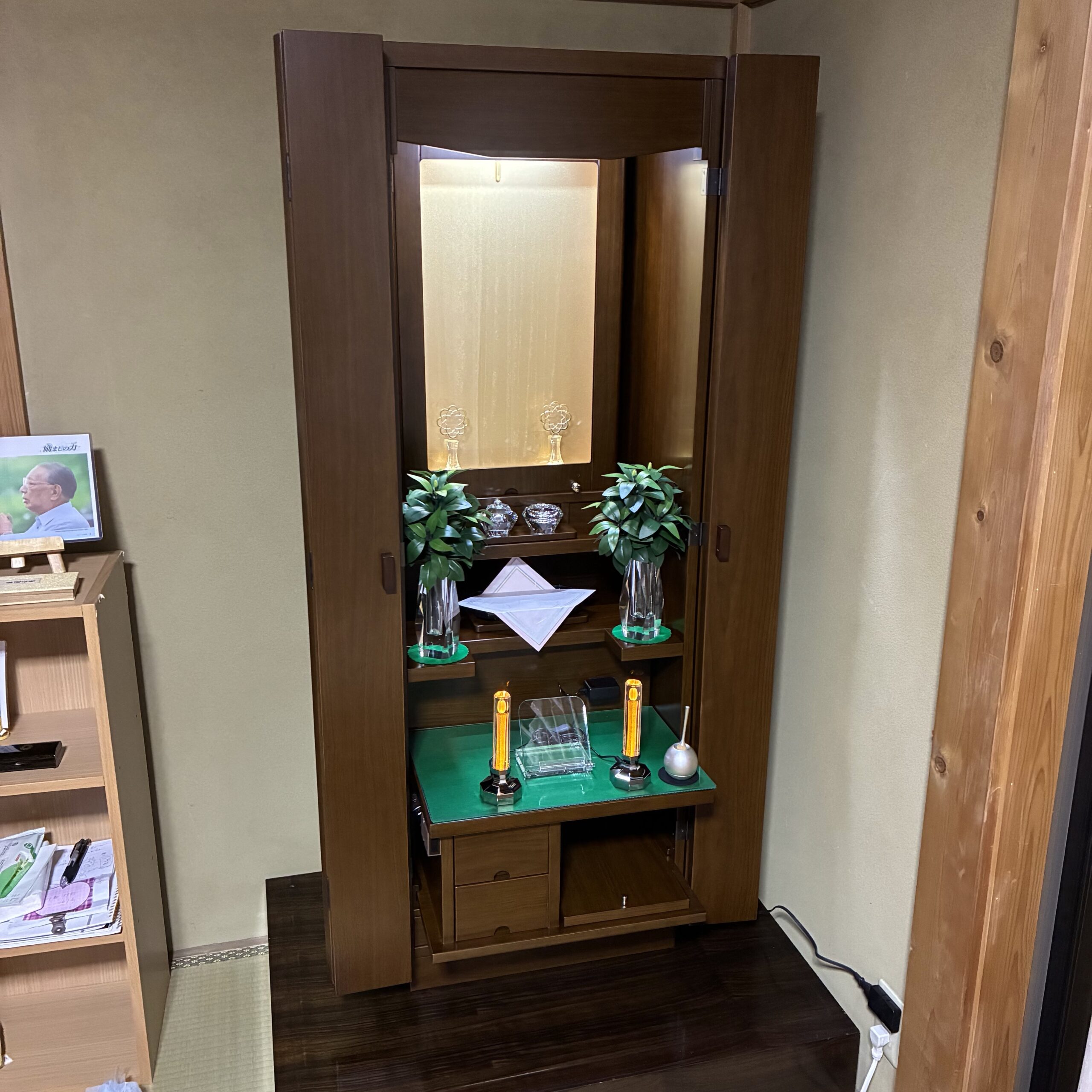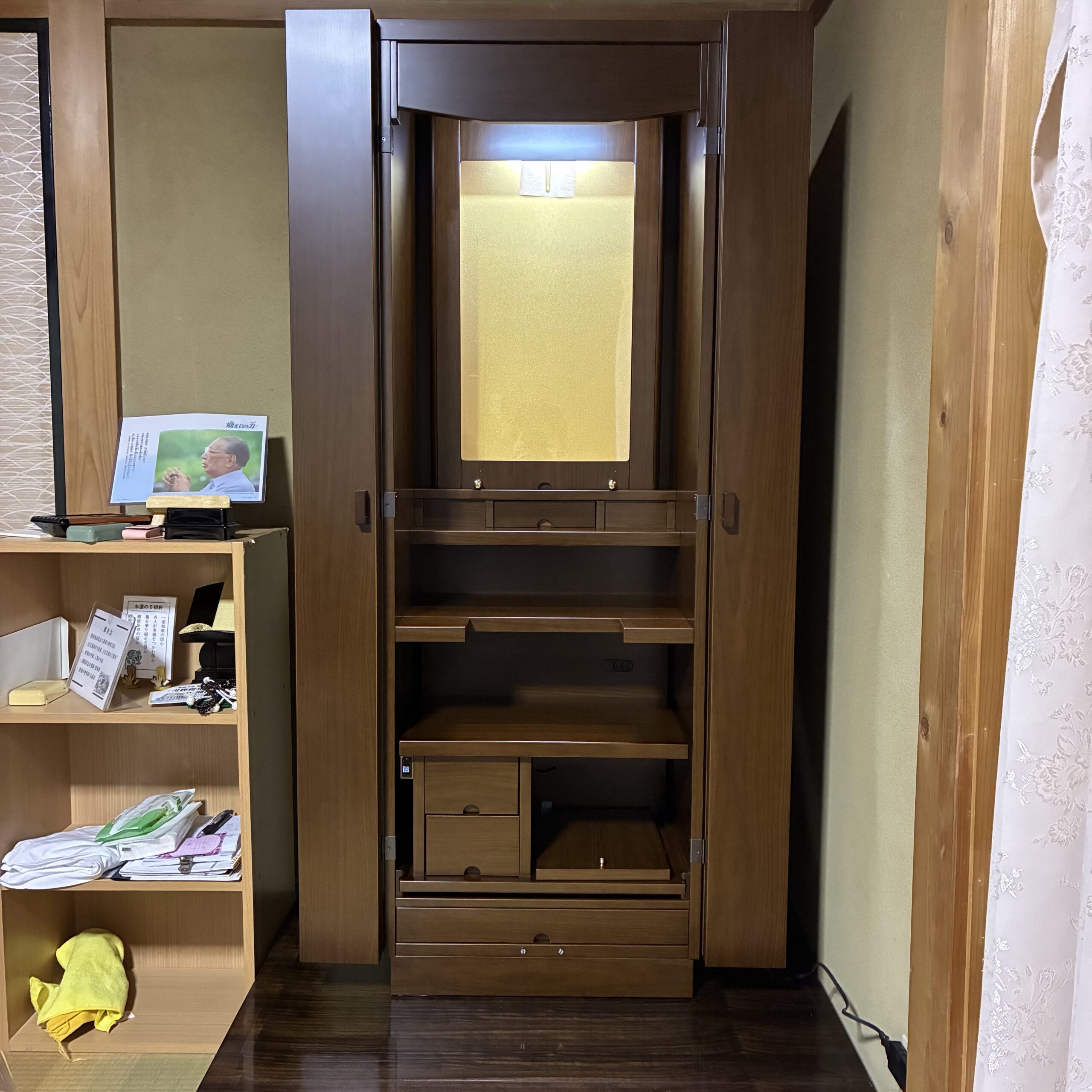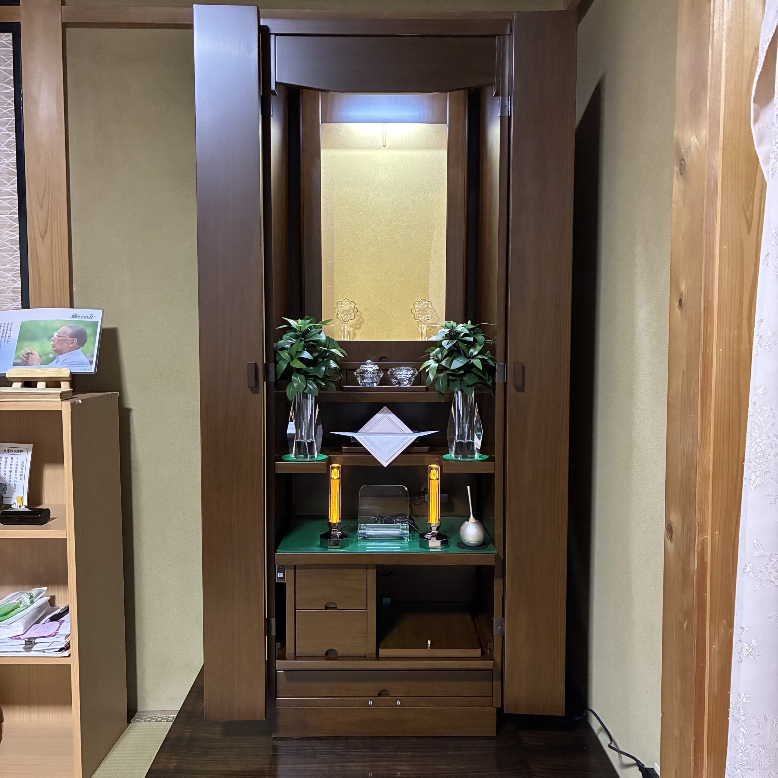 御厨子の外と中にLED設置により、通常家具調仏壇よりも明るくなっております。